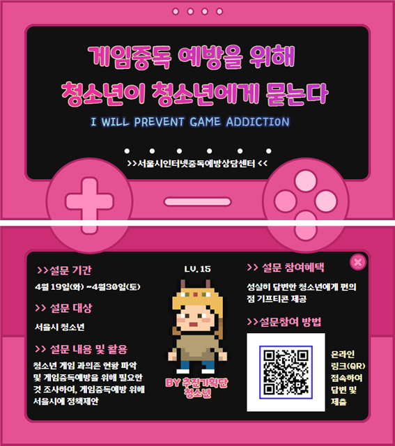 서울시아이윌센터에서 게임과의존 현황과 게임중독 예방을 위해 필요한 것들을 알아보기 위해 청소년을 대상으로