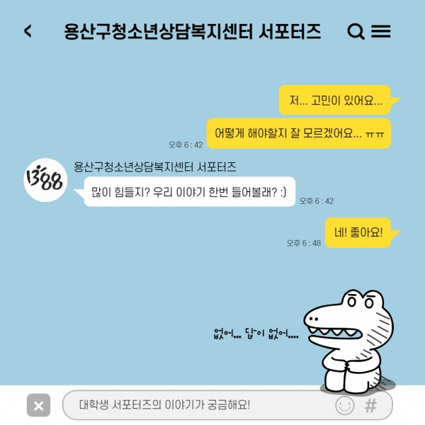 1388청소년지원단 서포터즈 3조 영상콘텐츠 소개 ' 청소년 고민해결 꿀팁!' 페이지 정보 작성자 최고관리자 작성일21-06-04 14:08 조회11,672회 댓글0건 관련링크 이전글 다음글 목록 본문 고민이 있니?서포터즈가 알려주는 고민해결 꿀팁을어서 클릭해봐!https://youtu.be/OuDaZ0H2fhE 댓글목록 등록된 댓글이 없습니다. 이전글 다음글 목록